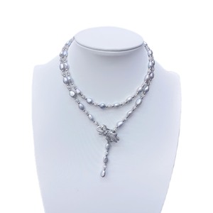 ネット赤ins淡水真珠異形バロック気質灰長型ネックレス多層重ね蝶ボタンセーターチェーン