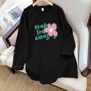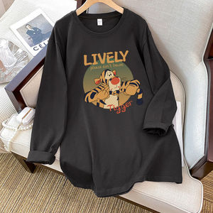 純綿長袖tシャツ女性秋新作韓国版ins潮オリジナルデザイン感プリント超美しいシャツ上着