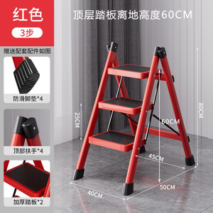 滑り止めの厚さ-赤い三歩はしご【頭なしはしご】