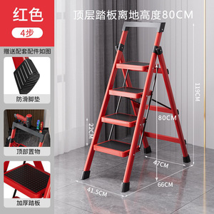 厚い高さ-滑り止め赤い四歩はしご【平口はしご】