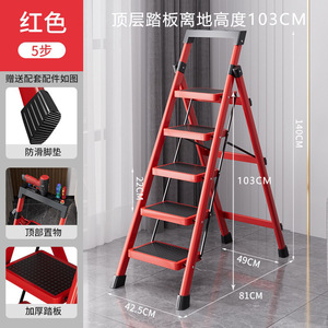 厚い高さ-滑り止め赤い五歩はしご【平口はしご】