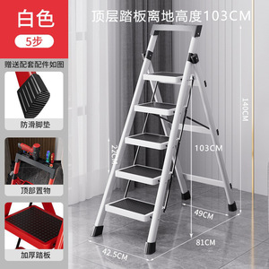 厚い高さ-滑り止め白色五歩はしご【平口はしご】