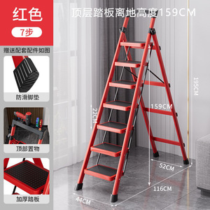 厚い高さ-滑り止め赤い七歩はしご【平口はしご】