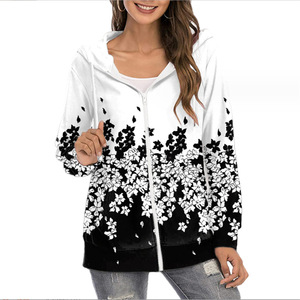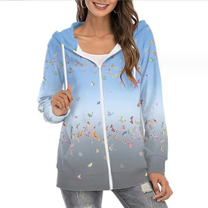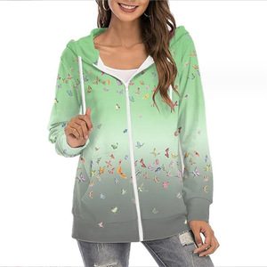 2025 春と秋の新作ヨーロッパとアメリカの貿易婦人服クロスボーダープリントフード付きスウェットシャツジッパー通勤グラデーションジャケット女性用