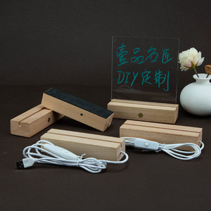 長条実木発光台座ガラス画充電金ledランプデスクトップ置物usb直挿金木造工芸品