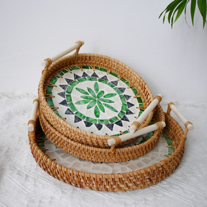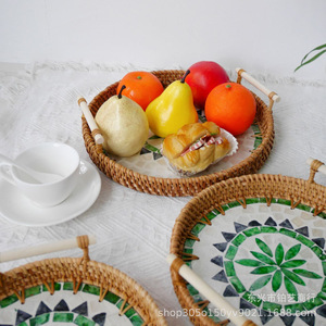 ベトナム籐編みトレー貝殻フルーツプレート籐バスケット編み朝食バスケット日本式竹編みパンバスケットお菓子バスケット