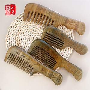 緑檀木実木櫛美化粧櫛寛歯密歯魚腹長柄取っ手プレゼント木櫛新工芸櫛