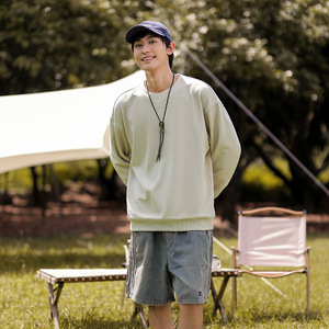 380gの大きなテリーフリース、ドロップショルダー、アメリカンスタイルのラウンドネック、プリント入り無地スウェットシャツ、ゆったりとしたオーバーサイズバージョン、男女兼用のトレンディなブランド長袖
