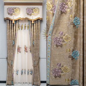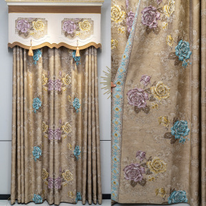 メーカー直販新型豪華客間寝室高精密4d大レリーフカーテン遮光ジャカードカーテン完成品