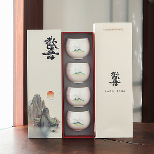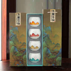 羊脂玉磁器の主人杯千里江山礼箱茶杯品茗杯ビジネス文創国潮活動お土産