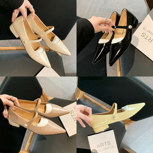 ブドウのお母さんのstudio leeの精巧な蝶結びの真珠の浅い口の丸い頭の平底の羊皮のバレエの靴の女性の春秋