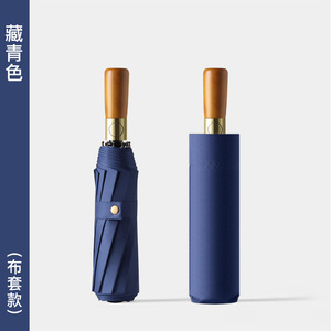 [自動] 24本骨日焼け止め傘 - ダークナイトブルー + レザーケース