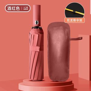 【手動】10骨黒ゴム晴雨傘-玖紅色