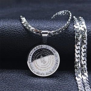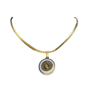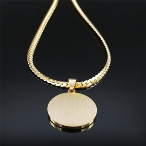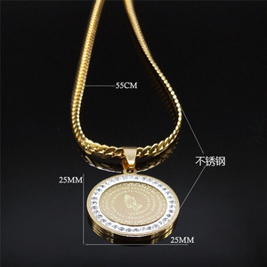 国境を越えた新しい記号文円牌ペンダントステンレスネックレスはジルコン金色中性風ファッションアクセサリーをはめ込んでいる