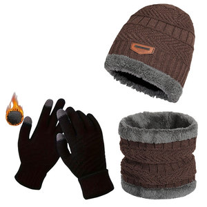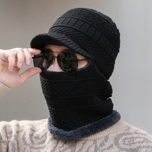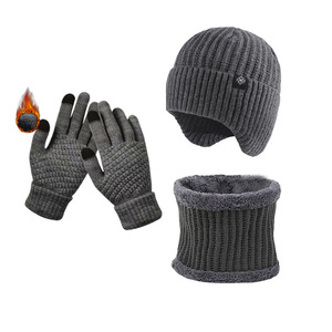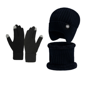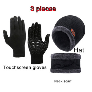ニット帽子三点セットの男性カバーの首を厚くして保温帽子の顔を保護する毛糸帽子の女性とベルベットのタッチパネル手袋
