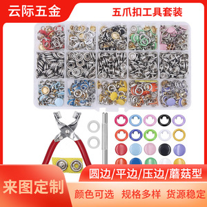 カラー五爪ボタン工具セット中空中実四合ボタン金属子供ボタンは卸売りできます。