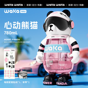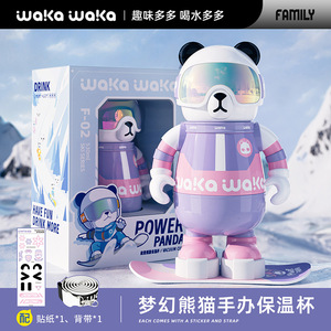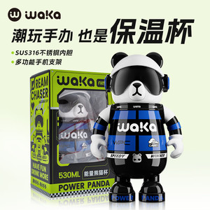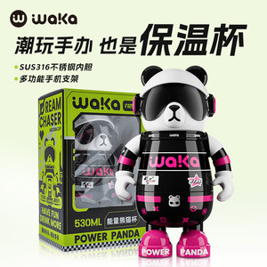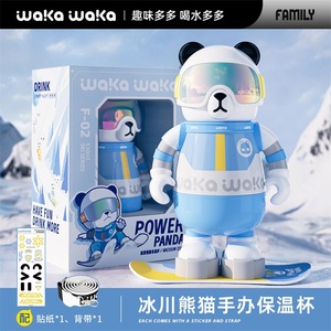 Wakaパンダ保温カップ316ステンレス男女水杯高颜値児童ストローカップアニメ潮游水カップ