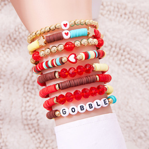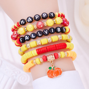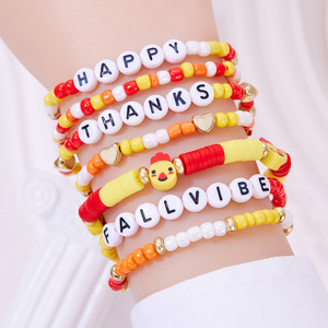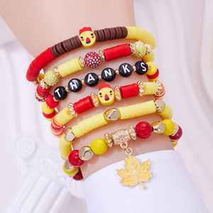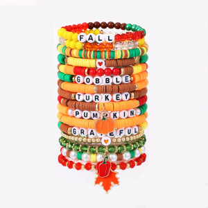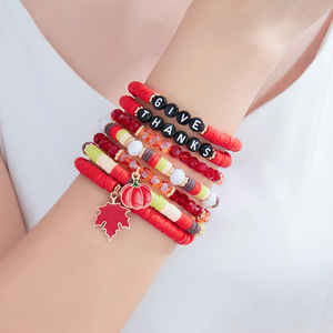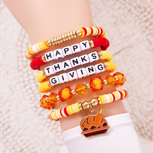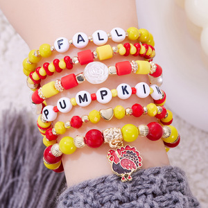 アマゾン人気感謝祭七面鳥紅葉ペンダントブレスレットセット秋豊作カボチャオレンジ水晶ブレスレット