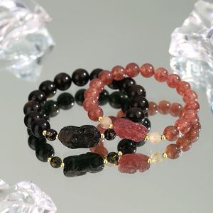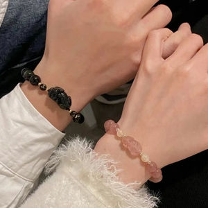 新商品の国潮のイチゴの結晶の黒曜石のピシュピストのブレスレットの女性の大衆の設計insの高い顔の値のカップルの手の串の装飾