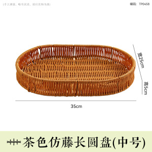 ブラウン模造籐オーバルプレート 35*25*5cm