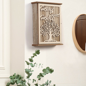 玄関生命ツリーキー収納ボックス自動車キーフックロック付き入戸防塵収納ボックス壁掛け式装飾