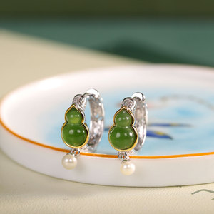 人品銀品ファッショントレンドイヤリングS925シルバー金メッキレディース透かし彫り和田碧玉イヤークリップひょうたん型イヤリング
