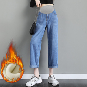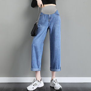 天猫の品質の現物の妊婦のジーパンの春秋の金のゆったりしているまっすぐな筒は底の広い足のズボンの春秋の服を打ちます。