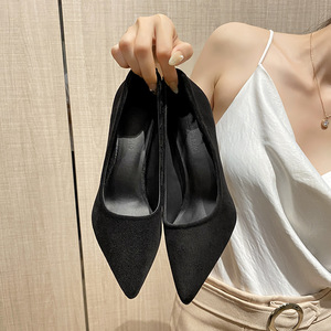 疲れにくいプロ仕様のフレンチスタイルの黒のポインテッドトゥスティレットハイヒール、ベッド用、2025年春秋新作、高級感と気質