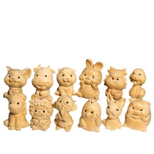 桃木の木の彫刻の十二生肖のフルセットのネズミの牛の虎のウサギの竜の蛇の馬の羊のサルのニワトリの犬の豚の車の置物の文は卸売りを遊びます。
