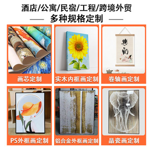 Amazon カスタマイズされた卸売無垢材装飾絵画高精細スプレー印刷クロスボーダー絵画コア手描き吊り絵画ホテルのソファの背景