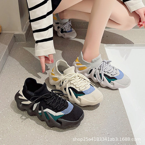春の新型のお父さんの靴のファッションの飛織のレジャーの運動靴の450ココナッツの八爪の魚のランニング靴の女性の靴