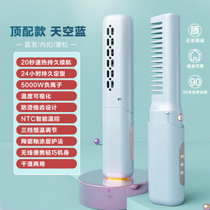卸売ポータブルヘアアイロン、旅行用ワイヤレス小型充電式ストレートヘアコーム、ストレートとカールの両用、滑らかで優しいヘアケア