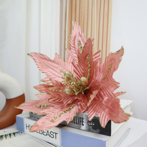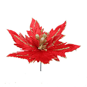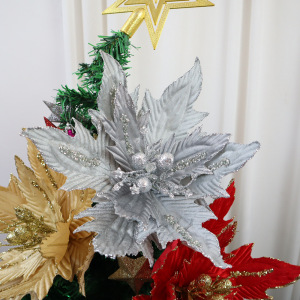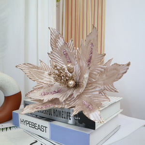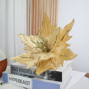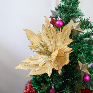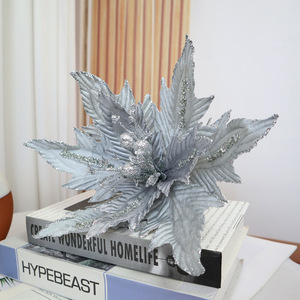 33cm模造布芸スパンコールクリスマス花diy挿し枝葉飾り定型エンボスクリスマス花クリスマスツリーアレンジ
