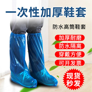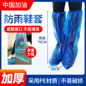 使い捨て靴カバー中長高筒漂流防水厚ブーツカバーpeプラスチック耐久性保護雨靴カバー/ダブル