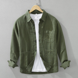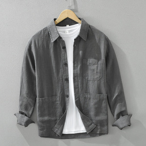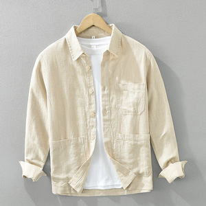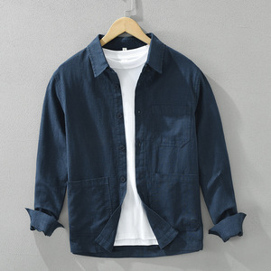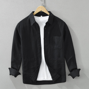 7205日系レトロでシンプルな長袖シャツ男性ファッション