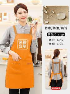 【ショルダーストラップスタイル・防水・耐油】エプロン・オレンジ
