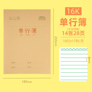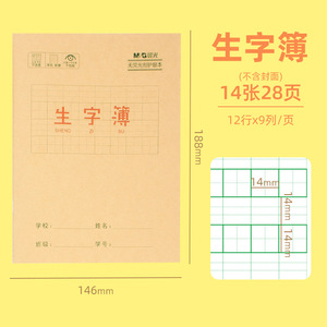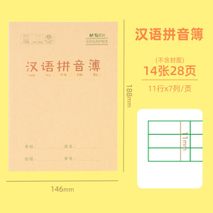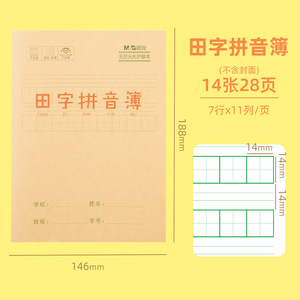朝光牛皮仕事本ピンイン田字格24k米黄内ページ国語数学学生練習本