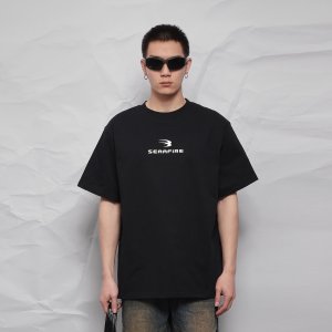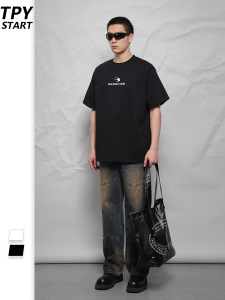 Qiaoshan 280G レトロレタープリント Tシャツメンズ夏イントレンドブランドストリートカップルルーズ半袖トップス