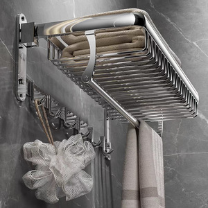 トイレ厚手タオルラック304ステンレス浴室ネットバスケット物置棚壁掛け服収納棚ダブル折り畳み