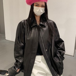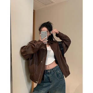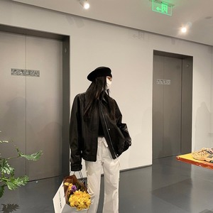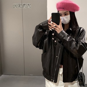 「天菜を着る」カジュアルなレトロな植なめ羊皮の本革のコートの女性のゆったりした大きいサイズの生放送