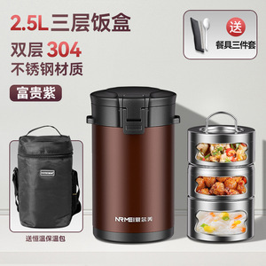 紫2.5L三層【304ステンレス】【保温バッグ/食器セット/ストラップ】