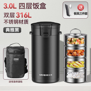 Enmei 24 時間超長時間断熱ランチボックスバケツ 316 ステンレス鋼学生大容量 3L ポータブル 4 層オフィスワーカー