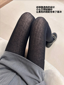 春のiu風の薄いタイプの半透のズボンの靴下の縦縞はやせている韓国版insの純色の底の靴下の女性を現します。