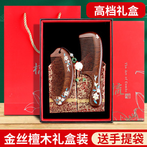 無料彫刻付き高級ブラックゴールドサンダルウッドプリントコーム、ペイントコームギフト、高級木製コームギフトボックス、ナースデーギフト