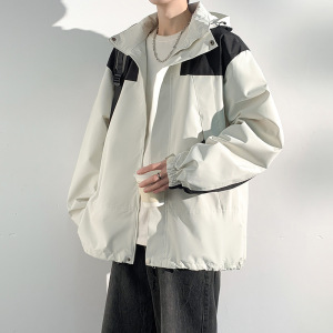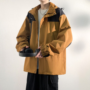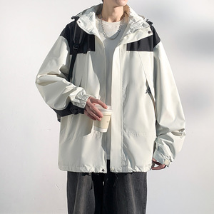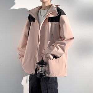 2024年新作 アウトドア カップル向け カラーブロック ジャケット 取り外し可能なフード付き 防水 防風 登山服 防風防水