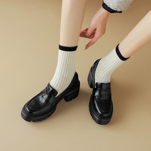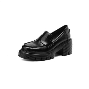 英倫の復古の丸い頭の厚い底の楽福の靴のハイヒールの深い口の1足は小さい革靴の春の新型の怠け者の靴の女性の靴を漕ぎます。