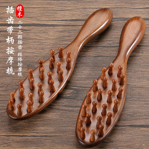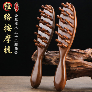 金檀木製マッサージロングハンドルコーム、多機能歯付きマッサージ22本爪コーム、刻印ロゴ入り、抜け毛防止