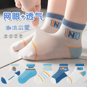 子供用靴下春と秋の薄いタイプの靴下の網目の靴下の男の子の中で大きい子供の男の子の夏の運動の中で筒の通気性の綿の靴下