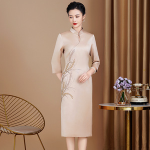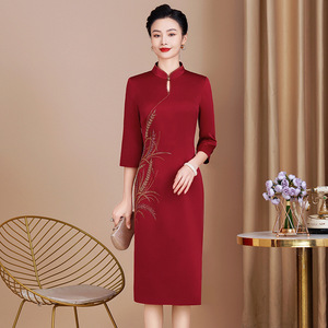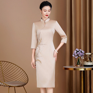喜姑のドレスの披露宴は中年の若いファッションのワンピースを飾っています。
