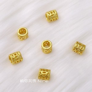 18k沙金唖金艶消し大穴桶珠透かし銭点隔珠diy手数珠アクセサリーブレスレットネックレス散珠